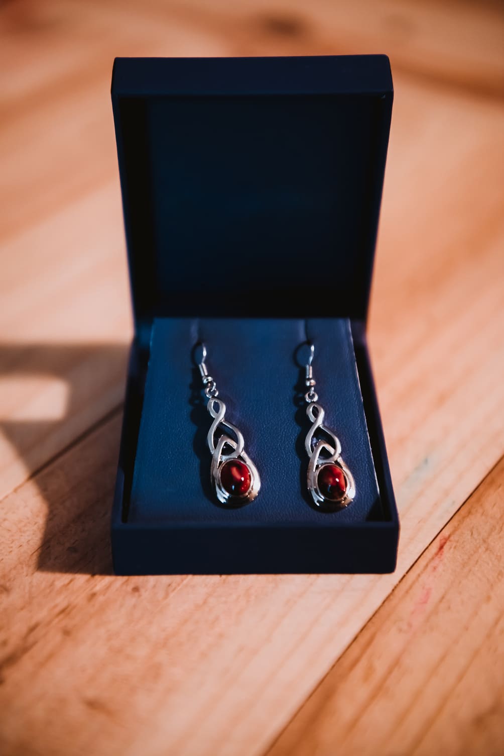 Boucles d’oreilles argent et pierre rouge – Élégance intemporelle